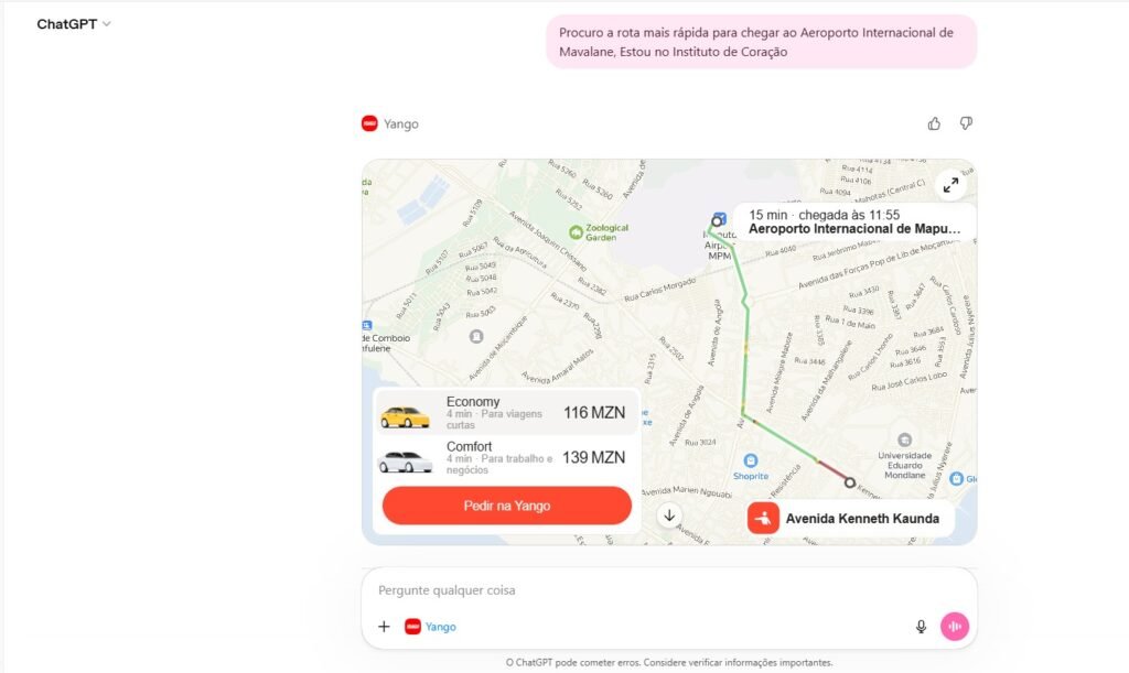 A Yango Ride já está disponível no nosso país para instalação ou baixar na loja de aplicações do ChatGPT pelo link abaixo: